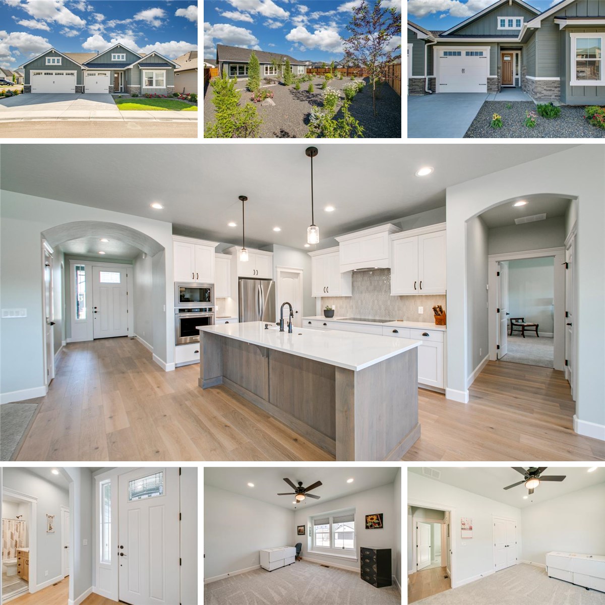 Looking for a custom-built home without the wait for construction? Don't miss this charming, craftsman-style, 4-bedroom, 2-bathroom, 3-car garage home located in one of Kuna's highly coveted neighborhoods: Indian Creek Ranch. This beautiful, single-level home features a split bedroom floor plan with 10 ft ceilings, spacious quartz kitchen island, under mount farmhouse sink, induction stove top, soft close drawers/cabinets with rollout shelves, built-in Stainless Steel KitchenAid microwave & oven with air fryer feature, custom honeycomb blinds throughout, corner electric fireplace, water softener, & conditioned crawlspace, to name a few. (Full list in D tab.) Enjoy your mornings sitting under the covered east-facing back patio overlooking a variety of freshly planted Franz Witte trees, bushes, and plants. The fully-fenced, maintenance-free xeriscaping conserves water usage, lowers costs, and makes for carefree living. The community features a pool, pickleball courts, & playgrounds.